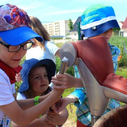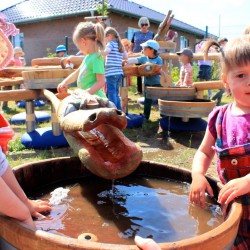 Zum Glück lagen in den Fächern der Kleinen jede Menge Wechselsachen parat: Die wurden gestern in der Warener Waldorf-Kindertagesstätte auch dringend gebraucht. Sozusagen nachträglich als Kindertagsgeschenk ist auf dem Grundstück der Einrichtung gestern ein riesiges Wasserspielmobil eingeweiht worden und das war natürlich sofort der Hit bei den Kleinen.