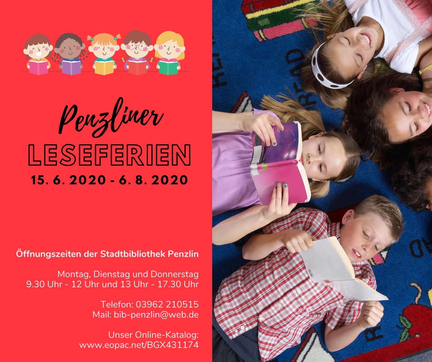 Schüler der 3. bis 6. Klassen können sich ab sofort in der Penzliner Stadtbibliothek anmelden und kostenlos altersgerechte Bücher entleihen. Über die Anzahl der gelesenen Bücher gibt es am Anfang des neuen Schuljahres ein Zertifikat, das gemeinsam mit kleinen Preisen auf der Abschlussfeier überreicht wird. Zertifiziert werden die Bücher, über die bei der Rückgabe etwas aus dem Inhalt erzählt werden kann. Denn nur so ist eine Überprüfung möglich, ob die Bücher wirklich gelesen wurden.