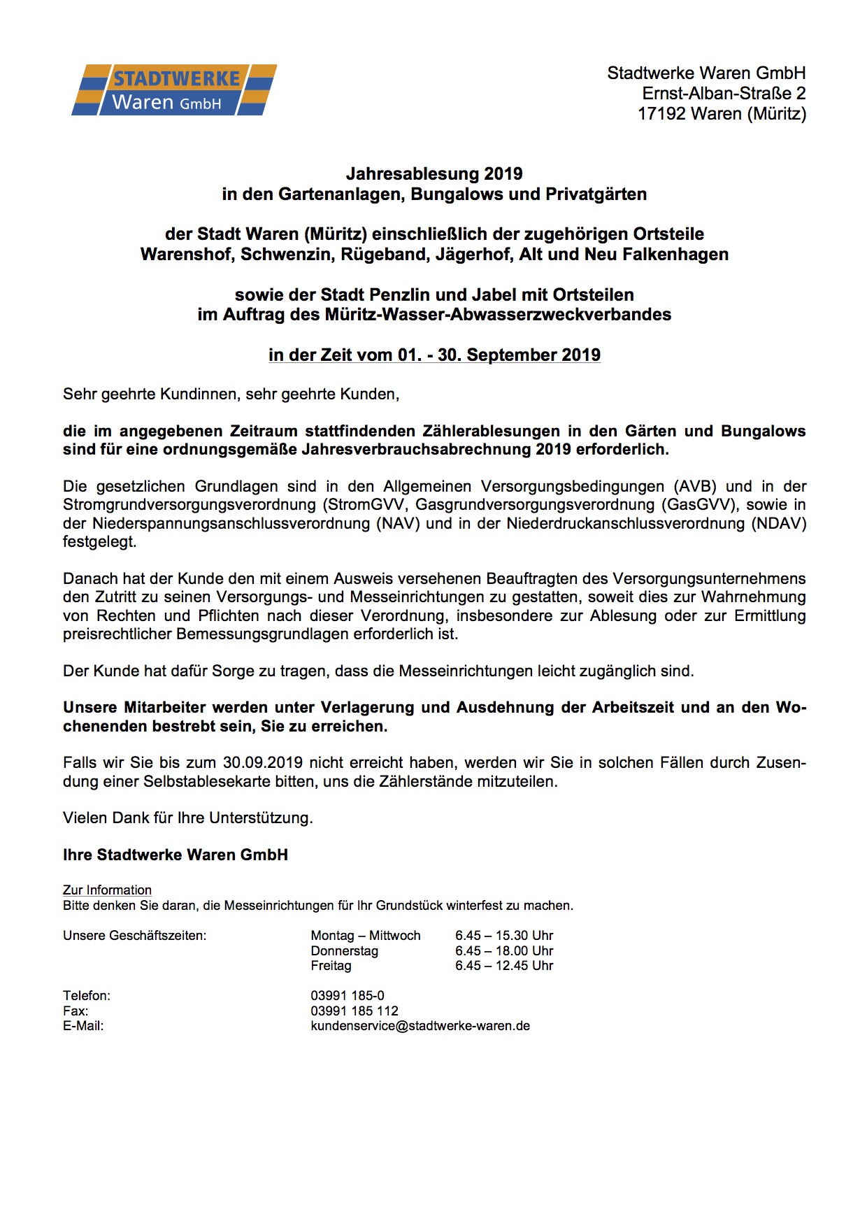 Die Ableser der Warener Stadtwerke sind wieder unterwegs.