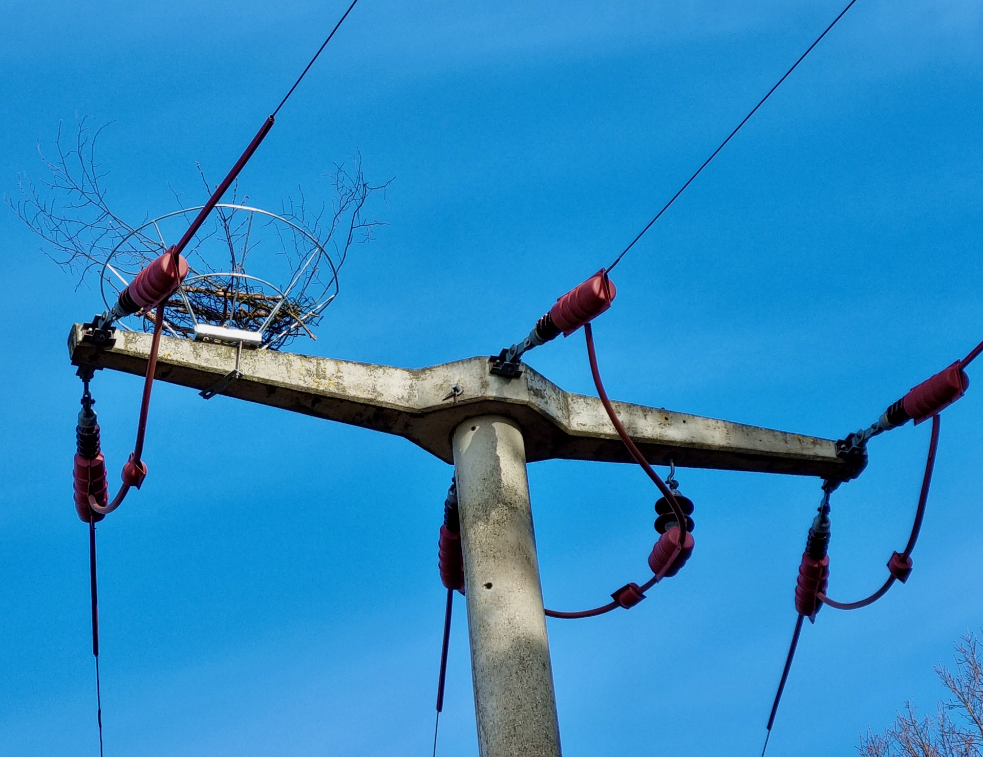 Eine Nisthilfe dient dem Naturschutz und der Versorgungssicherheit, da Äste beim Nestbau nicht auf die Freileitung fallen können.