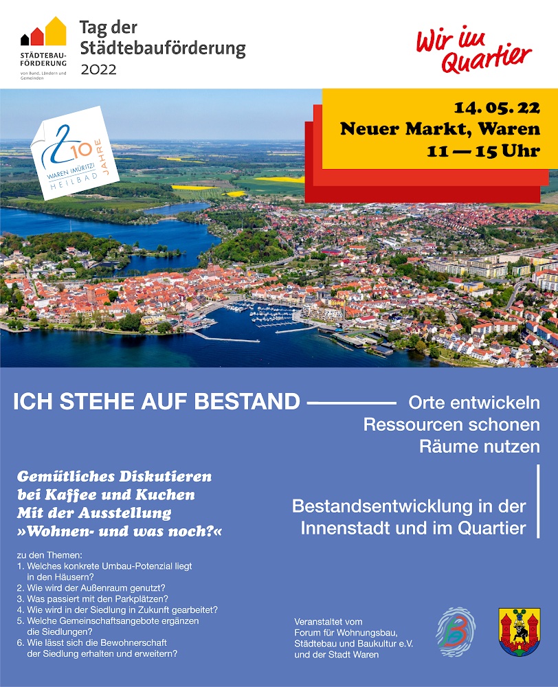 Zum Tag der Städtebauförderung gibt es auch in Waren am kommenden Sonnabend, 14. Mai eine Veranstaltung.