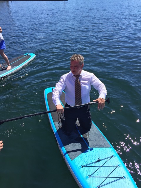 Im vergangenen Jahr gab’s viele lustige Momente, denn man darf sich beim Stand-Up-Paddling auch anziehen, wie man will. Und da stand dann plötzlich ein Warener Geschäftsmann in Schlips und Kragen auf dem Brett – alles ist möglich.