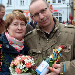 Überrascht wurden heute nicht nur Karnevalisten, sondern auch Heike und Frank Handorf. Die beiden feiern heute ihren 20. Hochzeitstag und wurden mit einem eigenen Ständchen bedacht. Das haben sie auch schon vor 20 Jahren bekommen, als sie damals als frischvermähltes Paar das Rathaus verließen.