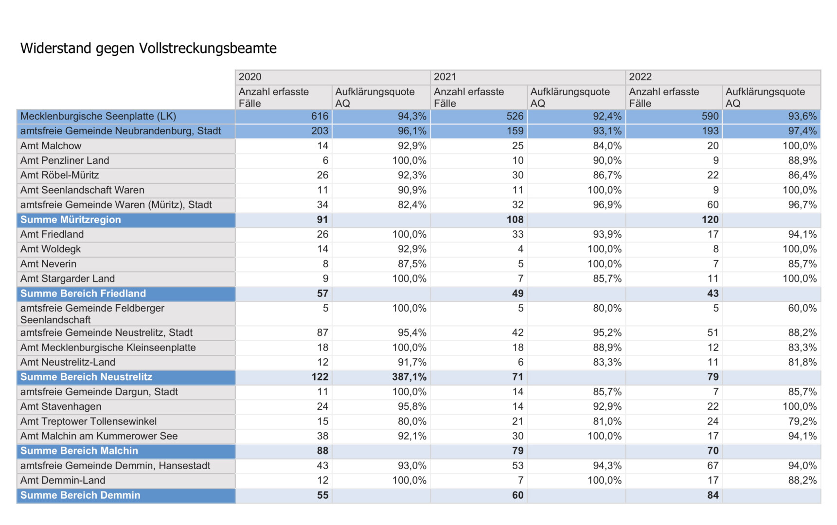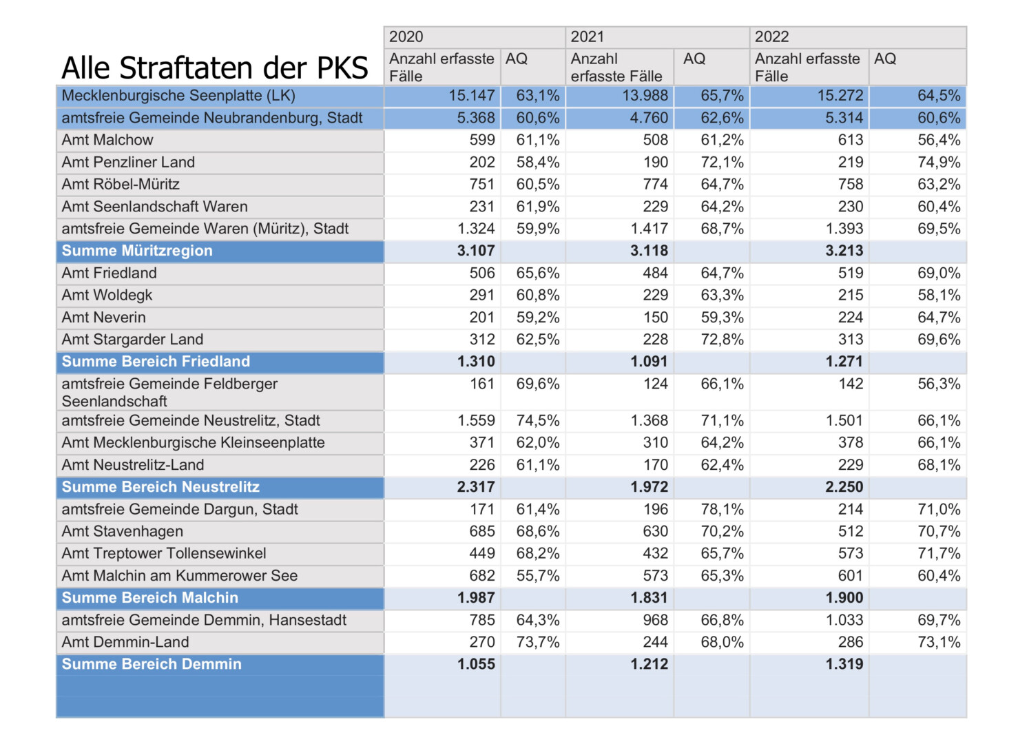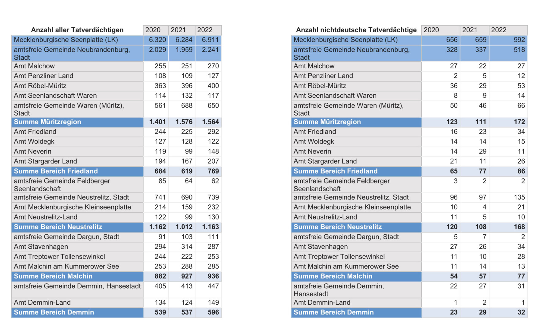 Interessant auch die Zahl der Tatverdächtigen, die für die Müritz-Region mit 1564 angegeben wird – davon 172 nichtdeutsche Tatverdächtige.