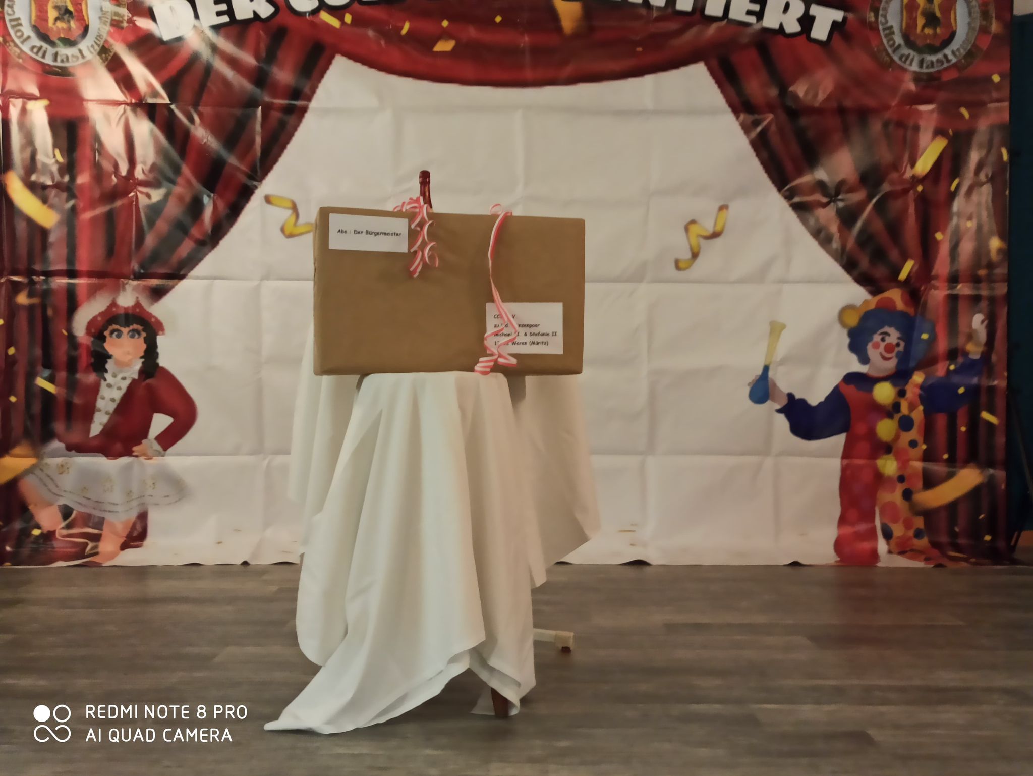 Im gar nicht mal so kleinen Paket lag der Schlüssel fürs Rathaus, den der Verwaltungschef in diesem Jahr nicht persönlich übergeben konnte, aber dennoch aus den Händen gab.