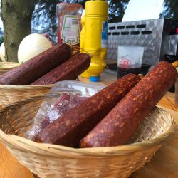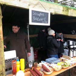 Neben Glühwein und und Kaffe, gab es auch Kuchen und Straußen-Bratwurst vom Straußenhof in Vipperow.