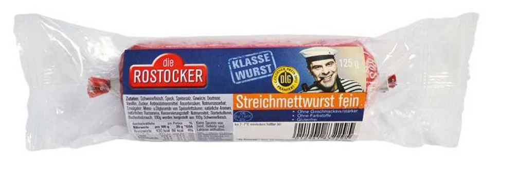 Die Rostocker, „Streichmettwurst fein“, 125 Gramm und