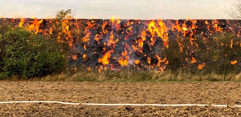 Die rund 3000 Strohballen, die gestern Nachmittag zwischen Groß Varchow und Bredenfelde in Flammen aufgegangen sind, brennen immer noch. Feuerwehrleute haben die letzte Nacht Brandwache gehalten und lassen die Strohballen kontrolliert abbrennen.