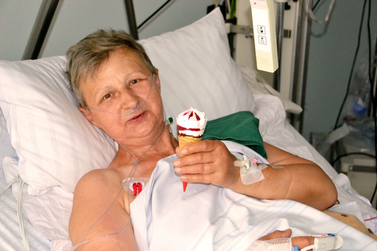 Sogar auf der Intensivstation des Müritz-Klinikums gab’s gestern eine kühle Erfrischung, sehr zur Freude von Hannelore Krugmann (Foto links) aus Röbel, die dort nach einer größeren Operation überwacht wird.