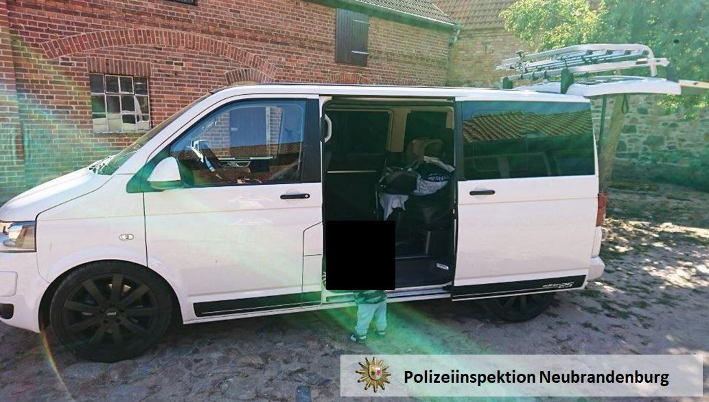 In der Nacht zum Dienstag ist in der Straße Unter den Kiefern in Röbel ein Fahrzeug der Marke VW T5 entwendet worden. Die Urlauber aus Sachsen-Anhalt stellten ihr Fahrzeug auf dem Parkplatz der Ferienhausanlage ab und bemerkten am nächsten Morgen den Diebstahl. Der weiße Transporter ist 14 Jahre alt, hat Schiebetüren auf beiden Seiten, schwarze Aufkleber über beiden Schwellern mit weißer Aufschrift „edition25“, Klarglasblinker an den Seiten, abgedunkelte Scheiben und einen an der Kofferraumklappe montierten Fahrradgepäckträger. Im Fahrzeug befand sich zudem der Kindersitz der Marke Römer King (wie auch auf dem Bild ersichtlich).