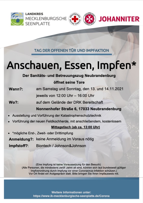 Bei dieser gemeinsamen Aktion des Landkreises Mecklenburgische Seenplatte mit dem DRK und der Johanniter Unfallhilfe steht auch ein Impfteam bereit.