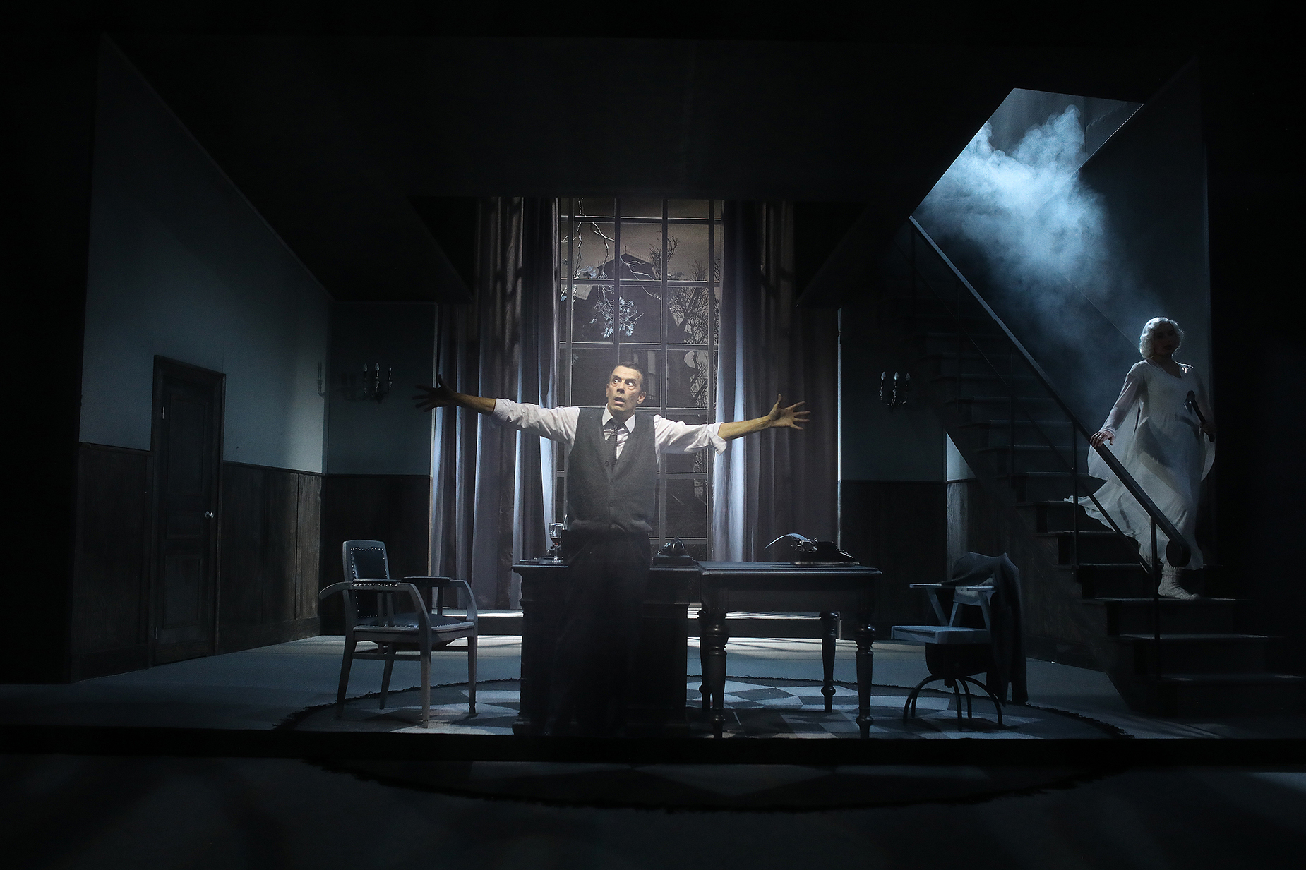 Nun zieht das Theater nach und das Stück hat es in sich. „Würdest Du wirklich einen Menschen ermorden, um an ein erfolgreiches Stück zu kommen?“ ist die Kernfrage bei „Todesfalle“. Die Ausgangslage des Stücks von Autor Ira Levin ist so einfach wie genial: Ein bekannter, älterer Autor wohnt in einem echt britischen, düsteren Landhaus und hat eine Schreibblockade. Er hält sich mit Schreibkursen für Jüngere über Wasser.