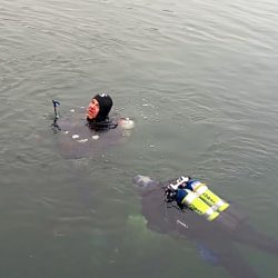 Taucher steigen ins Warener Hafenbecken