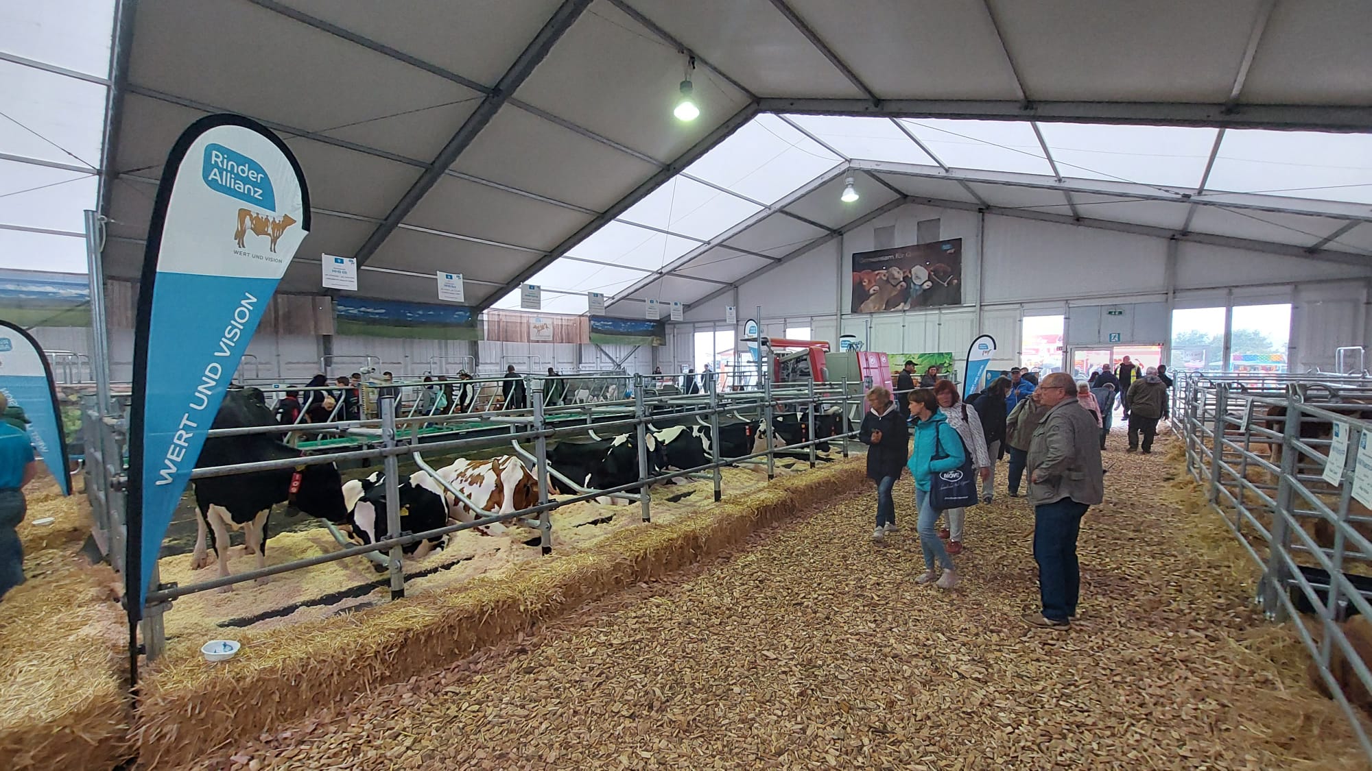 Zu einem besonderen Highlight hat sich bereits ein Stand eines Stalleinrichters gemausert, bei dem eine Kuh nachgebildet wurde, die als Roboterkuh auch den Kopf hin und her bewegen und mit den Augen „klimpern“ kann. Hier bleiben viele Kinder stehen und streicheln.