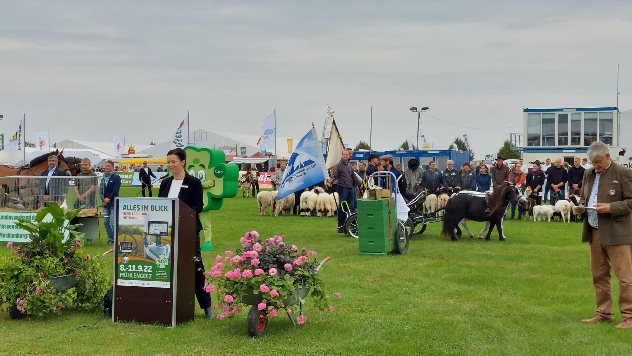 Riesige Mähdrescher, aber auch Grill- und Gartentechnik sowie viele Tiere: In Mühlengeez bei Güstrow hat die MeLa 2022 begonnen. Wer schon immer mal Kühe, Kälbchen, Schafe und Kaninchen von ganz dicht sehen will, hat diesmal wieder die Chance. Wie eine Sprecherin des Landesbauernverbandes gegenüber „Wir sind Müritzer“ sagte, sind wieder etwa 1000 Tiere zusammengekommen in vielen Rassen. Das Spektrum reicht von Pferd und Pony, über Bullen und Kühe, Kaninchen, Tauben, Hühner und Enten unterschiedlichster Rassen. Bis Sonntag zeigen rund 800 Aussteller aus elf Ländern auf insgesamt 172.000 Quadratmetern Ausstellungsfläche aktuelle Technik, Trends und Themen aus der Land-, Forst- und Ernährungswirtschaft. Insgesamt 32 Aussteller sind das erste Mal auf der MeLa dabei. Neben zahlreichen Landtechnik-Händlern haben unter anderem auch Futterhersteller, Anlagenbauer sowie Planer von Windparks und Energieanlagen, Unternehmen der Ernährungsbranche sowie aus Forst- und Gartenbau ihre Stände aufgebaut.