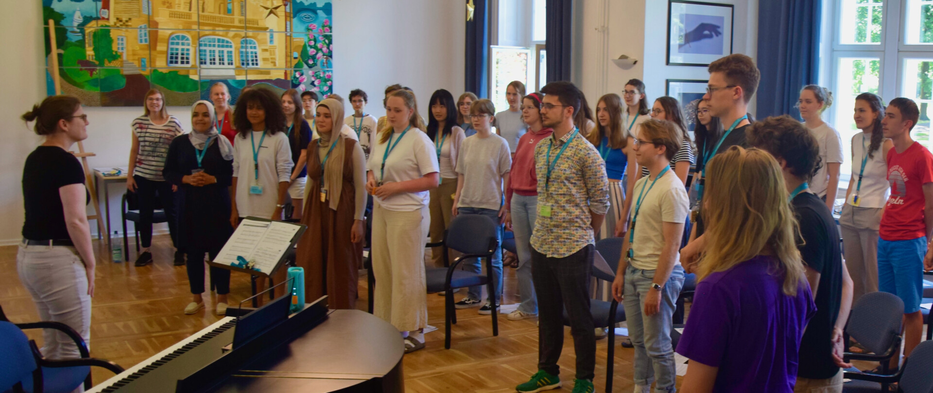 Geprägt wird diese Atmosphäre auch durch die parallel angebotenen kursübergreifenden Aktivitäten, unter denen die Musik eine besondere Stellung einnimmt. Sie bietet die Möglichkeit, sich kreativ auszuprobieren, Fremdes kennenzulernen und die musikalischen Fertigkeiten der Teilnehmer weiter zu vertiefen. Nach zwei Wochen intensiven Probens in zwei Chören und diversen Instrumentalensembles freuen sich die jungen Musiker, ihr facettenreiches Programm von klassischen Werken über Latinmusik bis hin zu Rock und Pop in einem Abschlusskonzert zu präsentieren.