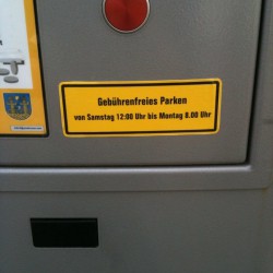 Wer am Wochenende auf der Insel seinen Wagen abgestellt hat, entdeckte auf den Parkautomaten Aufkleber mit dem Hinweis, dass am Wochenende gebührenfrei geparkt werden darf.