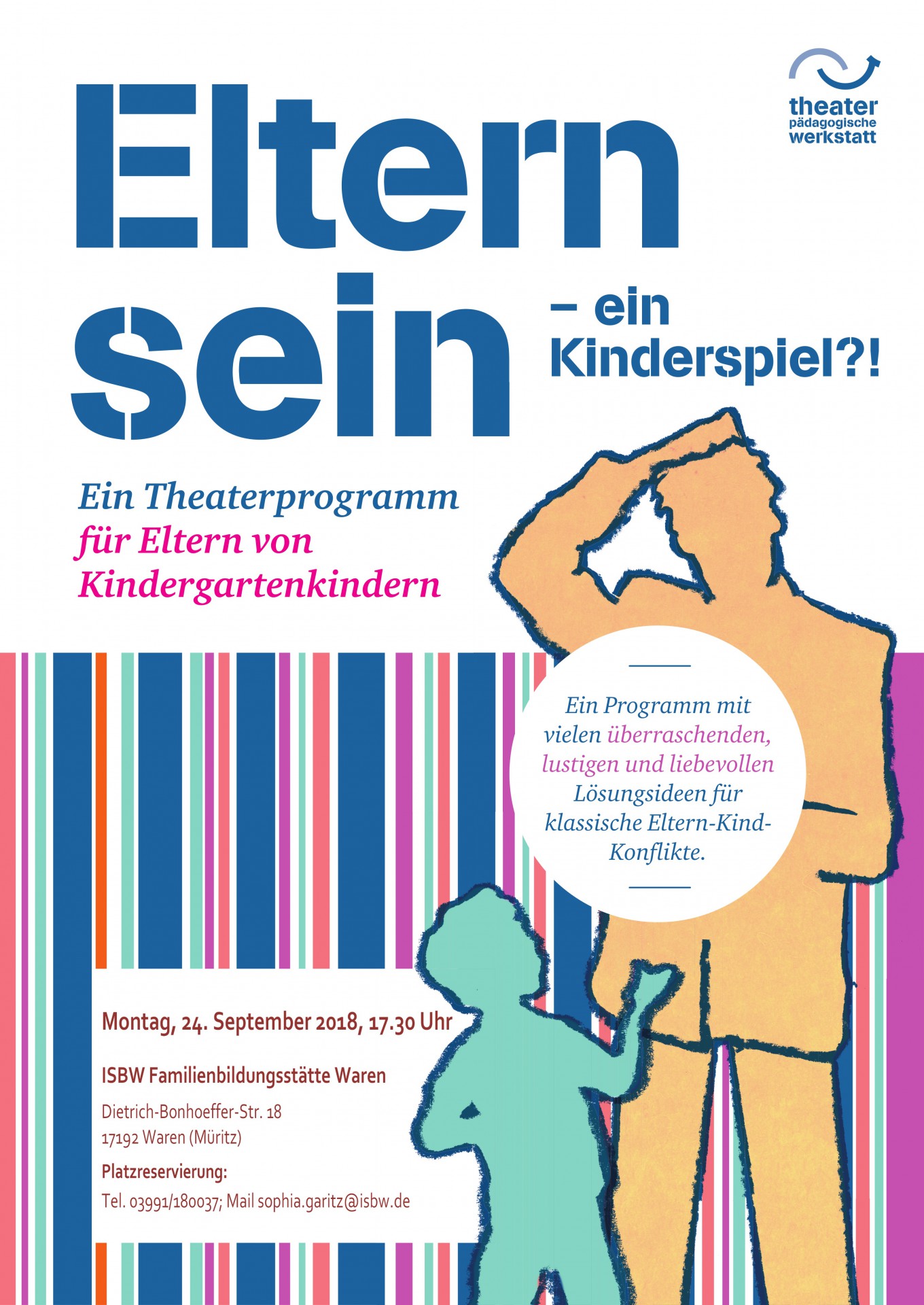 Zu diesem Theaterabend sind alle Eltern von Kindergartenkindern am 24. September um 17.30 Uhr in die ISBW Familienbildungsstätte, Dietrich-Bonhoeffer-Straße 18 (in Waren-West über dem Penny-Markt), eingeladen.