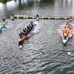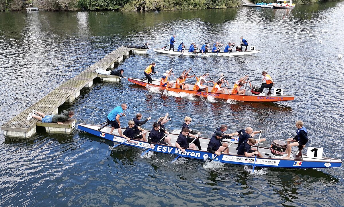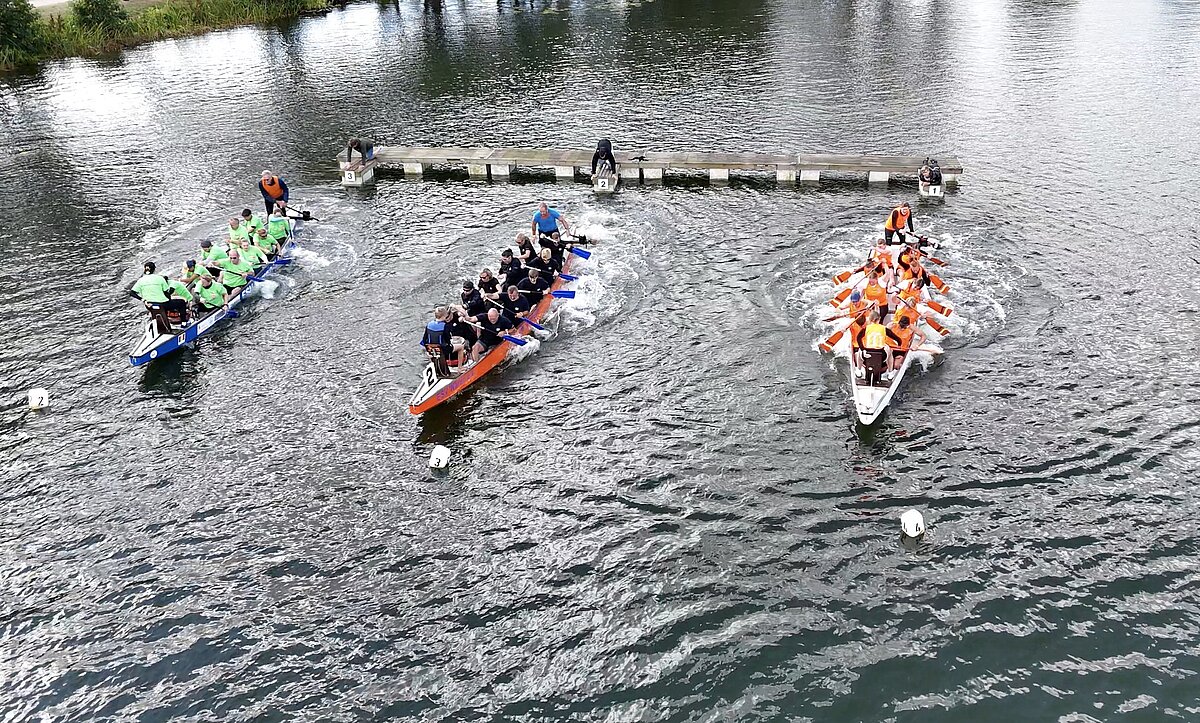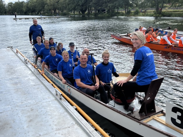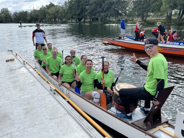 Obwohl der Wind richtig kräftig gepustet hat, sind bei den 14. Stadtmeisterschaften im Drachenboot auf dem Tiefwarensee am vergangenen Wochenende 20 Teams an den Start gegangen. Sie lieferten sich spannende Rennen, haben den Spaß nie aus den Augen verloren und begeisterten viele Zuschauer.