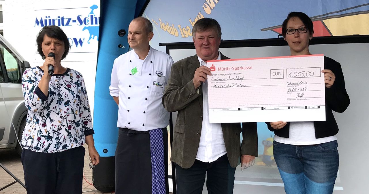 Küchenchef Michael Tiede war heute gemeinsam mit der Leiterin des Animationsteam vom Dorfhotel Fleesensee, Beate Krause-Kloth, zu Besuch, um dafür einen Spendenscheck über 1005 Euro zu überreichen.