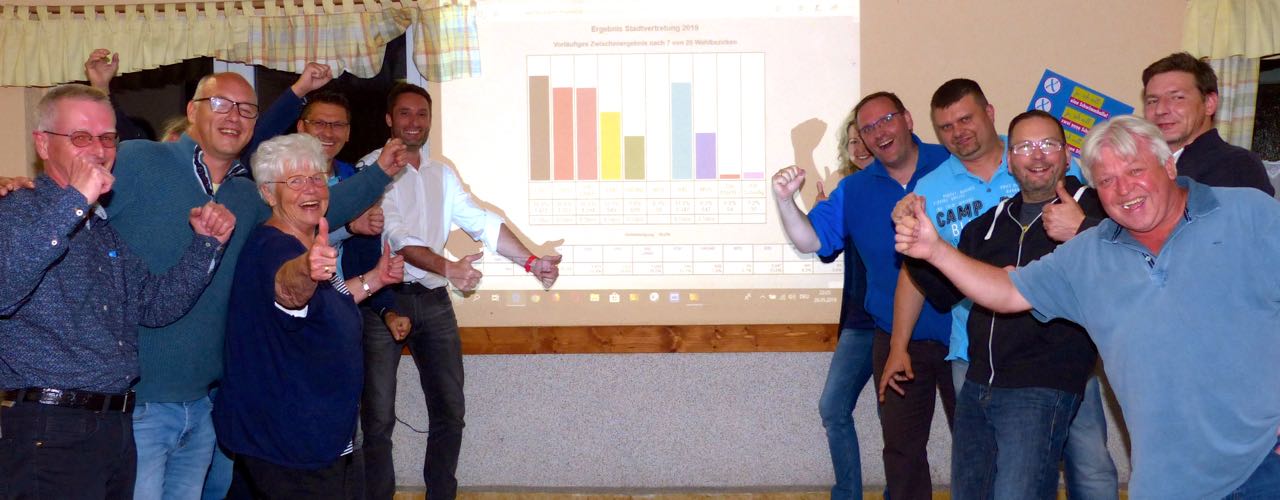Foto oben: Große Freude am Wahlabend bei der Warener FDP.