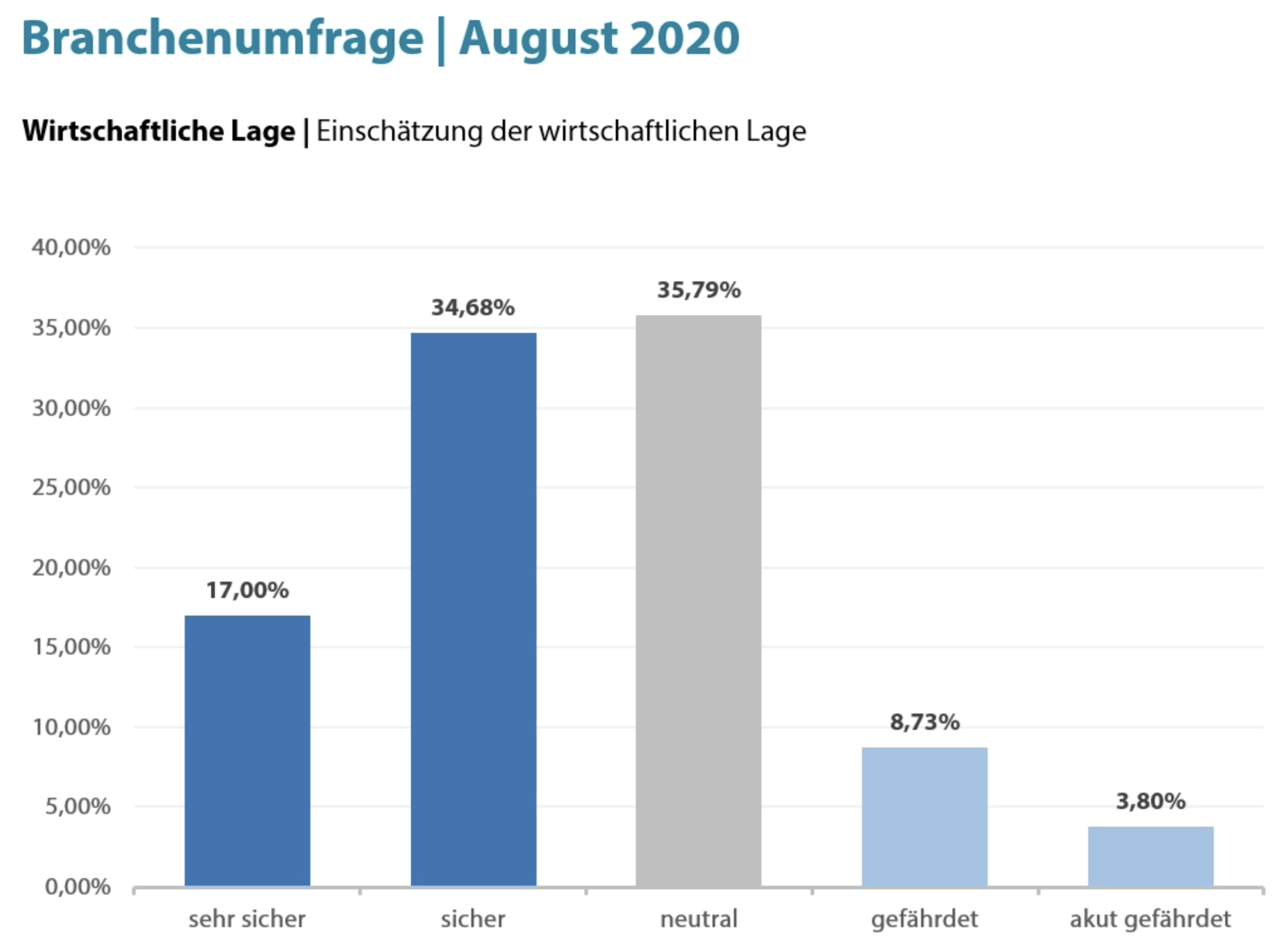 Die wirtschaftliche Lage in der Branche hat sich über die Sommerferien zwar weiter verbessert, bleibt aber für viele Unternehmen herausfordernd. So schätzt zwischenzeitlich mehr als die Hälfte der Befragten ihre Situation als sicher beziehungsweise sehr sicher ein; 36 Prozent bewegen sich zwischen Sicherheit und Unsicherheit; 13 Prozent dagegen sehen sich noch immer gefährdet oder gar akut gefährdet. Zudem sind derzeit 19 Prozent der touristischen Betriebe in Mecklenburg-Vorpommern auf staatliche Hilfen angewiesen – im Juni galt dies noch für 40 Prozent, im Juli für 26 Prozent. Würden diese staatlichen Hilfen wegfallen, müssten sechs Prozent der Unternehmen im Nordosten ihre Geschäftstätigkeit umgehend einstellen. Elf Prozent der Unternehmen könnten den Betrieb ohne Unterstützungen lediglich bis Ende September aufrechterhalten, 44 Prozent bis zum Ende des Jahres und immerhin 39 Prozent auch darüber hinaus.