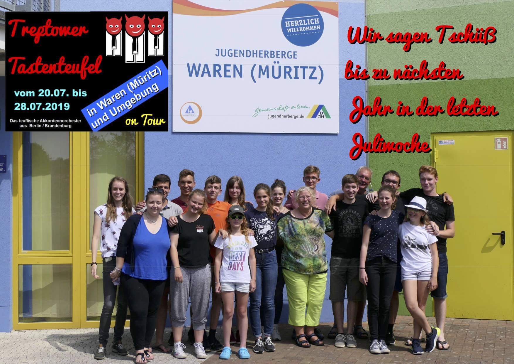 Da es uns und Euch so gut gefallen hat, werden wir nächstes Jahr wiederkommen und dann möchten wir auch in Waren nicht nur „Straßenmusik“, sondern mal ein richtiges Konzert geben, denn das Repertoire der Treptower Tastenteufel ist sehr groß.