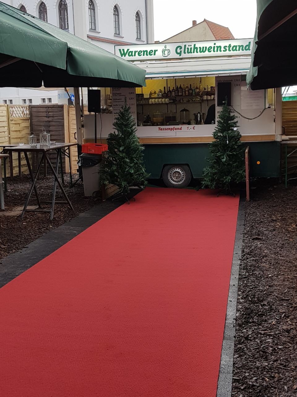 Am Warener Glühweinstand wurde heute der rote Teppich ausgerollt. Mitglieder des Lionsclub Müritz helfen dort seit 11 Uhr beim Glühweinverkauf. Außerdem gibt’s eine große Tombola mit vielen Preisen.