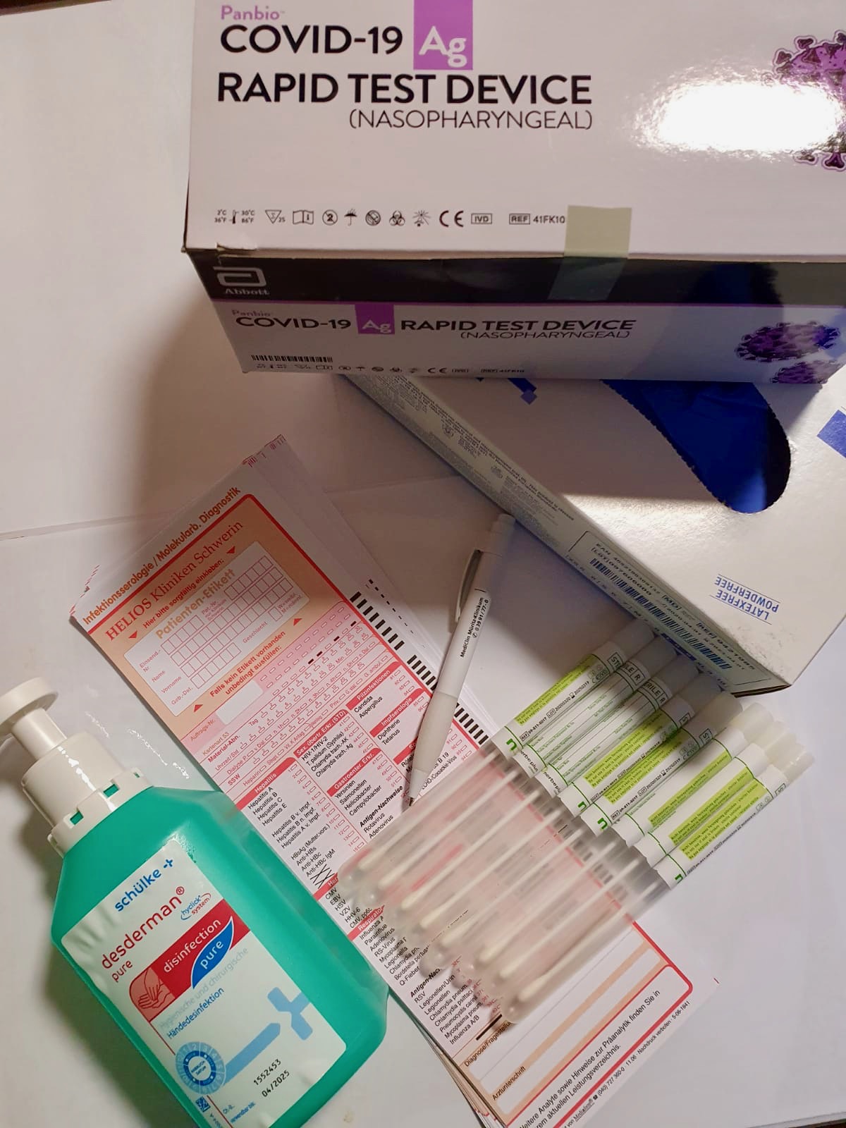 Bei Patienten, die zu ambulanten Eingriffen oder Maßnahmen ins Krankenhaus müssen, kommt ein sogenannter Antigen-Schnelltest zum Einsatz. Auch die werdenden Väter, die ihre Frauen in den Kreißsaal begleiten, erhalten solch einen Schnelltest. Dieser liefert innerhalb von 30 Minuten eine belastbare Aussage, ob jemand möglicherweise mit dem SARS-CoV-2 infiziert und ansteckend sein könnte. Sollte dieser positiv sein, kann der Eingriff nicht direkt wie geplant stattfinden, sondern eine mögliche Infektion mit dem SARS-CoV-2 Virus muss dann vorab abgeklärt werden. Die korrekte Diagnose einer SARS-CoV-2-Infektion stellt nur eine PCR, nicht der Antigen-Schnelltest – dies besonders bei asymptomatischen Patienten, hier hat der Antigen-Schnelltest Schwächen. Der Antigen-Schnelltest kann aber eine belastbare Aussage dazu treffen, ob ein Patient zum Zeitpunkt der Testdurchführung infektiös, also ansteckend ist.