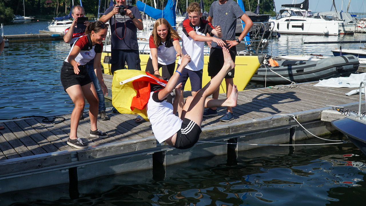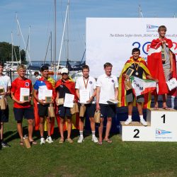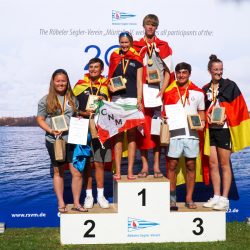 Die Bedingungen an den fünf Tagen der Jugendeuropameisterschaft auf der Müritz vor Röbel waren sehr schwierig. Nur durch die Erfahrung des Wettfahrtleiters Dirk Köhn wurde es möglich, in den Abendstunden die aufziehenden Winde und Thermik zu nutzen, um bei fairen Bedingungen insgesamt 7 Wettfahrten, von 10 geplanten in die Wertung zu bekommen. So konnte trotzdem doch an 3 von 5 Tagen ohne Wind und mit viel Hitze und Sonne, gesegelt werden. Bis zum letzten Tag hatte die Wettfahrtleitung alles Mögliche zu versucht, dies fand bei allen 11 teilnehmenden Nationen mit ihren 107 Seglerinnen und Seglern großen Anklang, und so waren zur Siegerehrung wohl alle zufrieden über das zustande gekommene Ergebnis.
