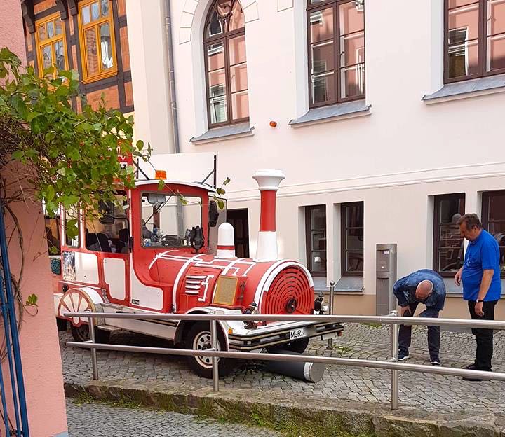 Ups, den Poller am Warener Rathaus hat es wieder mal erwischt. Dieses Mal war er Sonntagmittag der TschuTschu Bahn im Weg. Offensichtlich hat der Poller nicht reagiert, wie er reagieren sollte, der Fahrer hatte jedoch angenommen, dass er runter ist, und fuhr weiter.