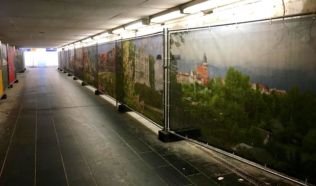 Die Bahn hat’s gut gemeint und den Bauzaun im Tunnel, der gerade saniert wird, am Bahnhof mit tollen Waren-Bildern verschönert. Das ist bei den Nutzern des Tunnels sehr gut angekommen und war auch gute Werbung für die Müritzstadt.