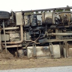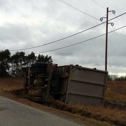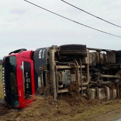 Bei Sophienhof ist heute Vormittag ein Laster nach rechts von der Straße abgekommen und umgekippt. Als Ursache gibt die Polizei Unaufmerksamkeit des Fahrers an. Der Mann blieb zum Glück unverletzt.