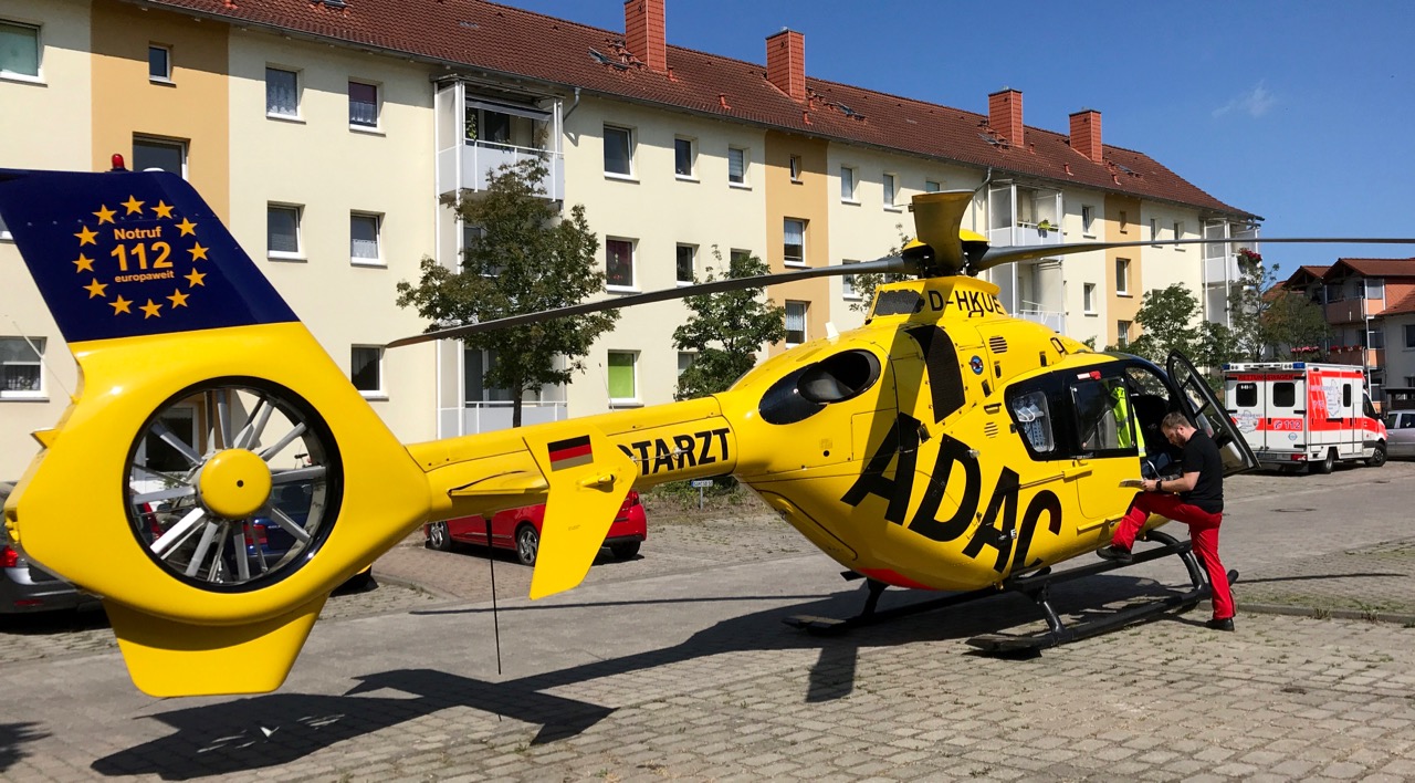 Dieser Rettungseinsatz hat heute Vormittag für Aufsehen in Waren gesorgt: Ein ADAC-Hubrschrauber kreiste zunächst kurz über der Mozartstraße und landete dann in der doch eher schmalen August-Bebel-Straße. Und zwar ohne polizeiliche Einweisung.