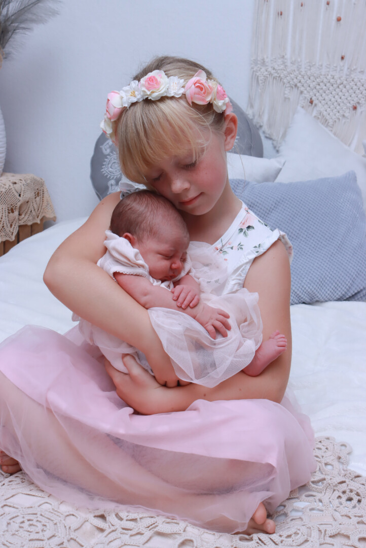 Malia Jolina Fischer, 9. September 2023, 21.49 Uhr, 3605g, 49 cm, Eltern: Sarah und Erik, Schwester Emely Jolyne Fischer 7 Jahre, Waren