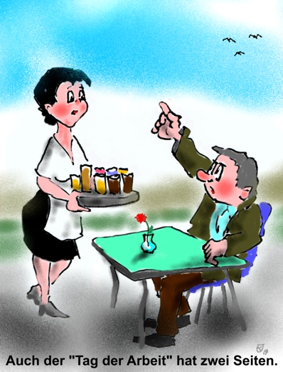 Mit dieser Zeichnung von Joachim Kluge grüßen wir all jene, die am heutigen „Tag der Arbeit“ nicht frei haben, und davon soll es ja ganz viele geben!