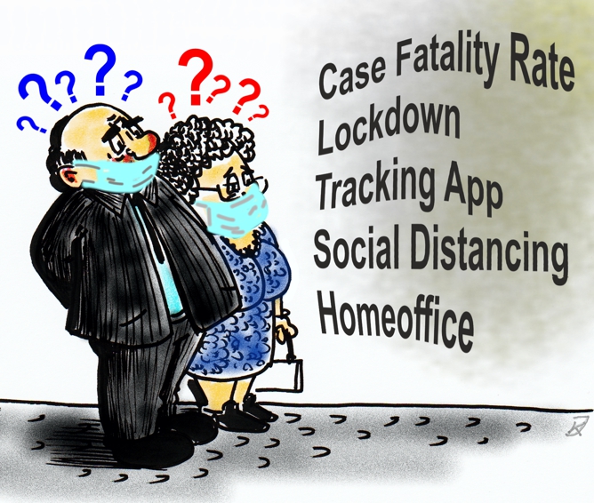 Wer soll dieses „Corona-Deutsch“ eigentlich noch verstehen, fragt sich auch unser Zeichner Joachim Kluge.
