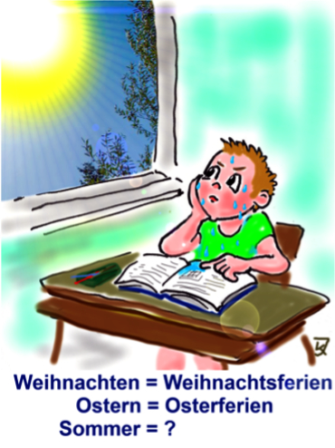 Diese Zeichnung von Joachim Kluge passt wohl auch zum heutigen Schultag, der wieder ein ganz heißer werden soll: