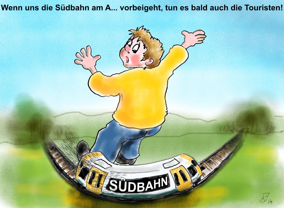 So sieht unser Karikaturist Joachim Kluge den geplanten Wegfall der so genannten Südbahn: