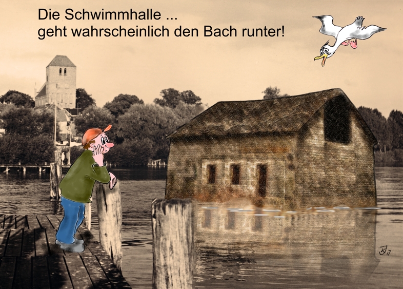 Zum Thema Schwimmhalle in Waren hat sich unser Zeichner Joachim Kluge auch so seine Gedanken gemacht.