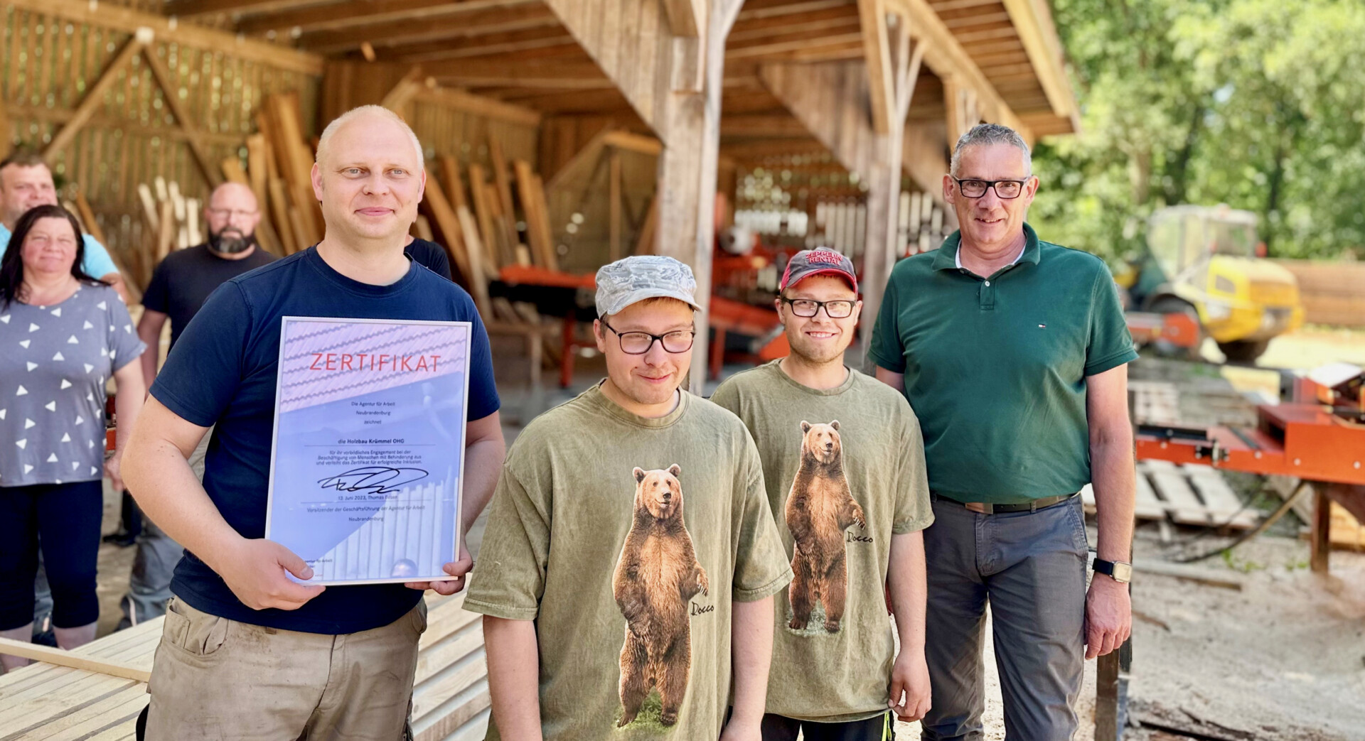 Die Arbeitsagentur vergibt diese Auszeichnung zum fünften Mal. „Die Holzbau Krümmel OHG ist ein weiteres exzellentes Beispiel gelungener und gelebter Inklusion im Landkreis Mecklenburgische Seenplatte,“ sagte Thomas Besse, der mit seiner Würdigung auch anderen Unternehmen zeigen möchte, „dass sich die Beschäftigung von Menschen mit Behinderung lohnt.“