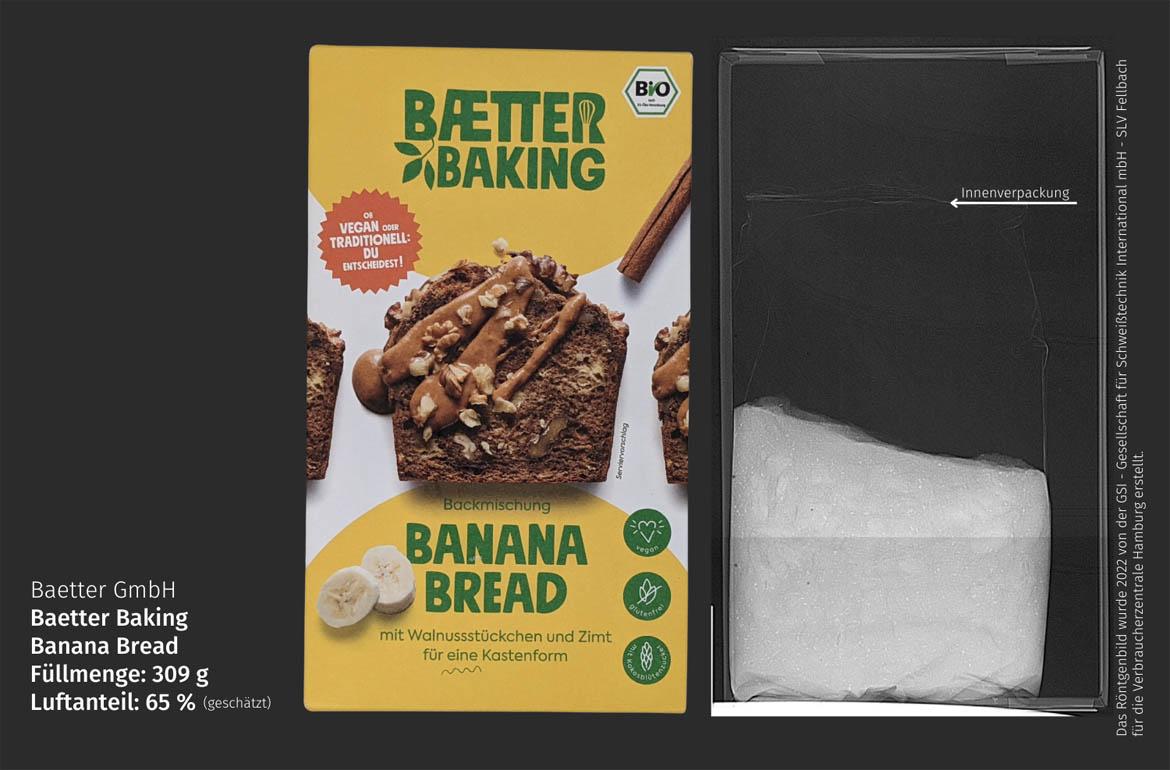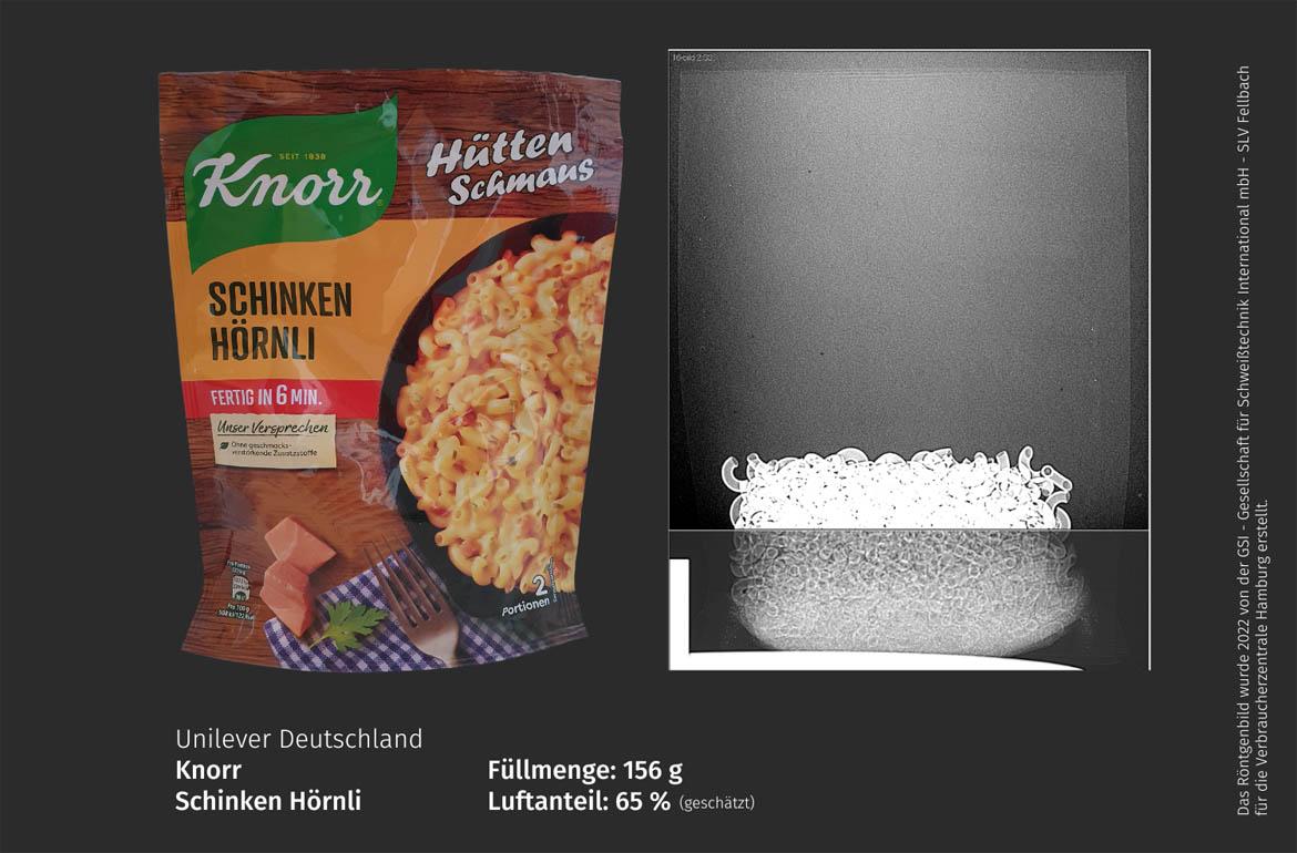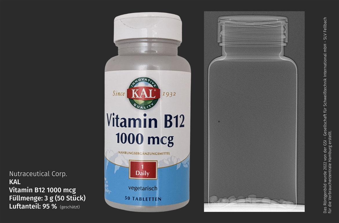 Alle 15 überprüften Artikel sind höchstens zur Hälfte gefüllt, viele weisen sogar noch weniger Inhalt auf. Spitzenreiter im negativen Sinne ist eine Plastikdose mit Vitamin-B12-Tabletten von KAL, die nur etwa fünf Prozent der Packung ausfüllen; der Luftanteil liegt bei 95 Prozent ist. Mit circa 65 Prozent Luft schneiden auch eine Backmischung für Bananenbrot von Baetter Baking, ein Mandelgebäck von Ricciarelli, eine Fertigmischung für einen Apfel-Nuss-Tassenkuchen von Lizza und die Knorr Schinken-Hörnli besonders schlecht ab.