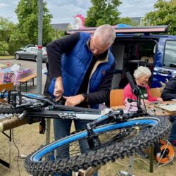 Fahrrad Karberg reparierte kleine Auffälligkeiten und stellte auch die ein oder andere Bremse oder Gangschaltung ein.