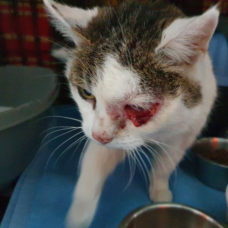 Eine Tierärztin hat die Katze zwischenzeitlich behandelt und mitgeteilt, dass es sich um eine äußerliche Augenverletzung handelt. Augensalbe und Schmerzmittel müssen vorübergehend verabreicht werden. „Sie ist vermutlich kastriert, ein Chip wurde nicht gefunden und wir hoffen daher, auf diesem Weg den Besitzer zu finden. Die Katze ist sehr anhänglich und scheint Menschen zu kennen. Sie hat keine Flöhe oder Ohrmilben, ist aber sehr mager. Sie lässt alles mit sich machen und ist sehr dankbar. Bitte melden Sie sich bei Sophie Gödecker Tel. 015204661623“, so die ehrenamtliche Tierschützerin.