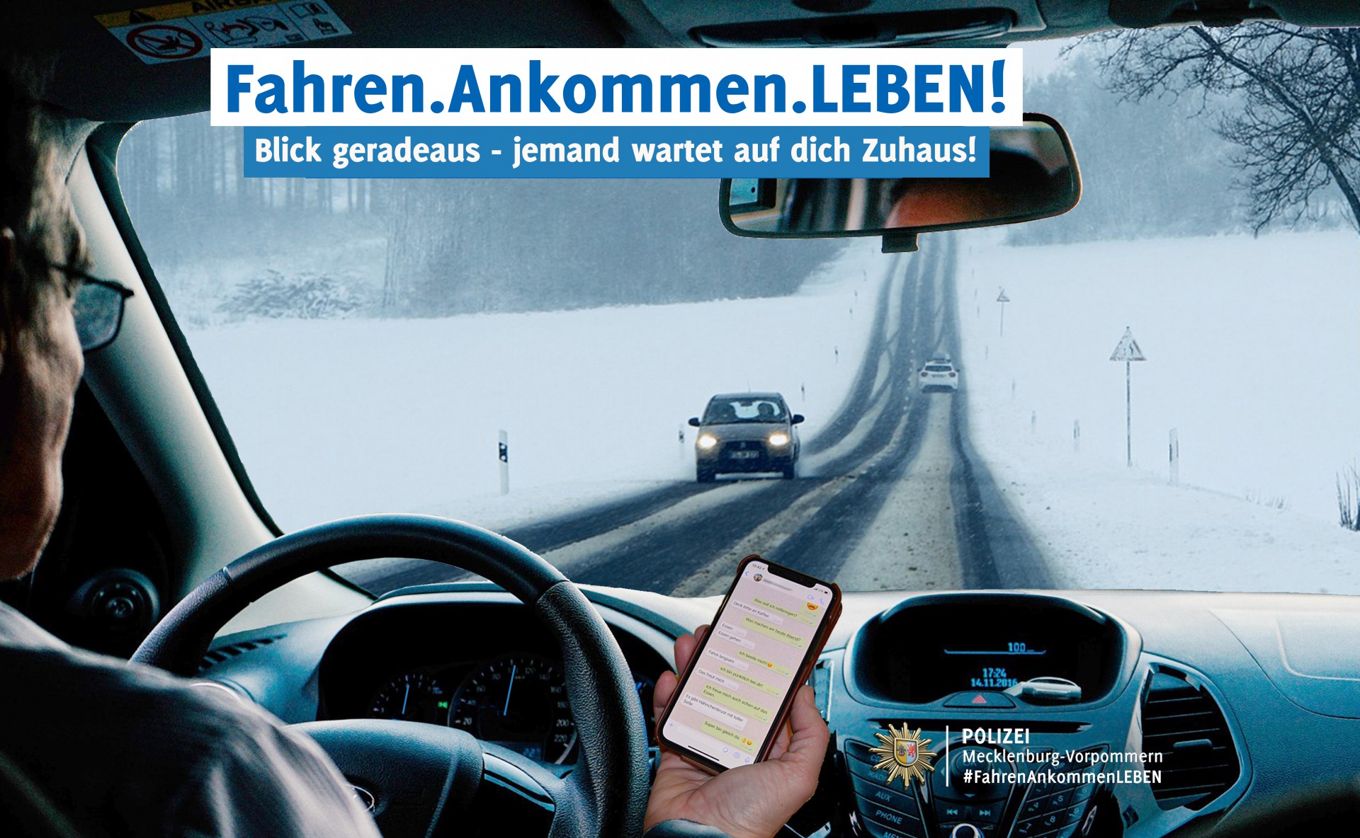 Am morgigen Montag starten in Mecklenburg-Vorpommern die themenorientierten Verkehrskontrollen mit den Schwerpunkten „Handynutzung und lichttechnische Einrichtungen“. Die Maßnahmen sind Teil der monatlichen Kampagne „Fahren.Ankommen.LEBEN!“. Die Kontrollen werden den gesamten Januar über fortgeführt.