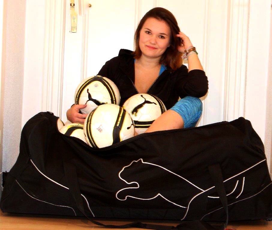 Wie viele Fußbälle passen in diese Reisetasche von Linda?