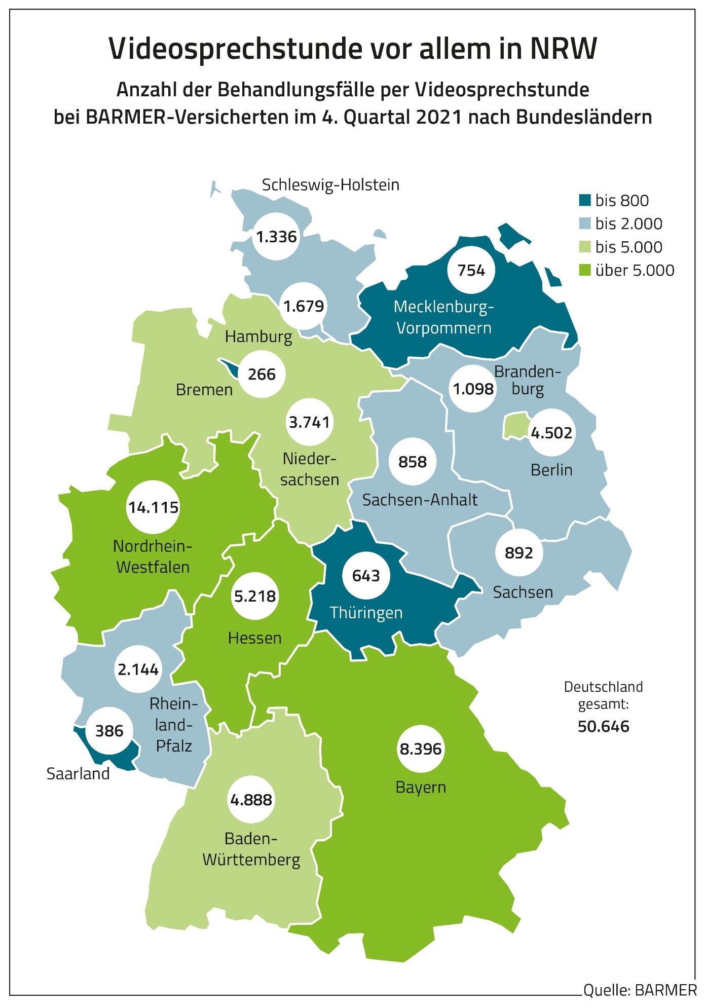 Laut der Barmer-Analyse rechneten rund 26.300 Ärzte im Jahr 2020 und rund 24.400 Ärzte im darauffolgenden Jahr die Kontakte per Video ab. Besonders oft kam die Videosprechstunde in der ambulanten Psychotherapie zum Einsatz. Allein hier gab es im Analysezeitraum etwa 177.500 Behandlungsfälle per Video. Sie wurden in den Jahren 2020 und 2021 von knapp 14.000 beziehungsweise etwa 14.400 Psychotherapeutinnen und Psychotherapeuten angeboten. „Psychotherapeutische Sitzungen per Video erweitern die Kontaktmöglichkeiten zwischen Ärzten und Therapeuten und ihren Patienten“, so Straub. Umso bedauerlicher sei es, dass die Psychotherapeutische Sprechstunde und die vorbereitenden Sitzungen vor dem Beginn der Psychotherapie seit April 2022 nicht mehr per Video stattfinden dürften. Auch hier sollten Restriktionen abgeschafft werden, damit die Videokonsultation weiter in Anspruch genommen werden könne, wo deren Nutzung sinnvoll sei.