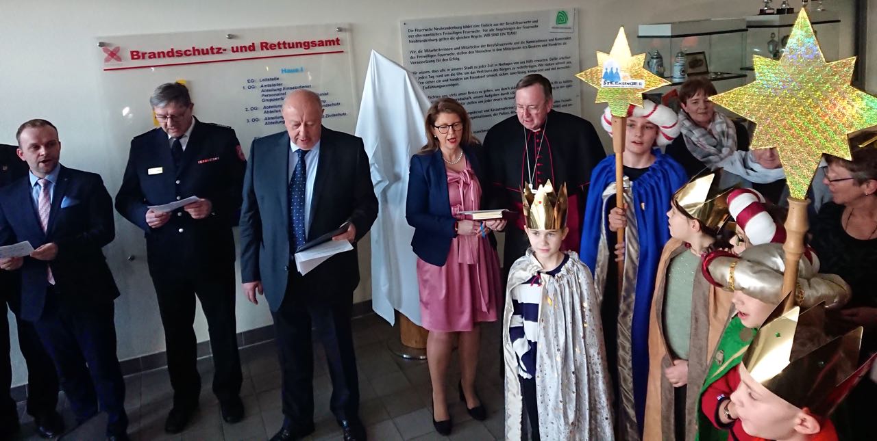Auch an die Feuerwehrleute dachten die Mitglieder des Dreikönigsvereins diesmal. Landesinnenminister Lorenz Caffier dankte allen 26 000 Kameraden im Land für die Arbeit in diesem Rekordsommer. Und der Hamburger Weihbischof Horst Eberlein segnete eine St. Floriansfigur, die der Dreikönigsverein den knapp 180 Feuerwehrleuten in Neubrandenburg übergeben hatte. Es war die erste derartige Kunstfigur, die einer Feuerwehr an der Seenplatte gewidmet ist.