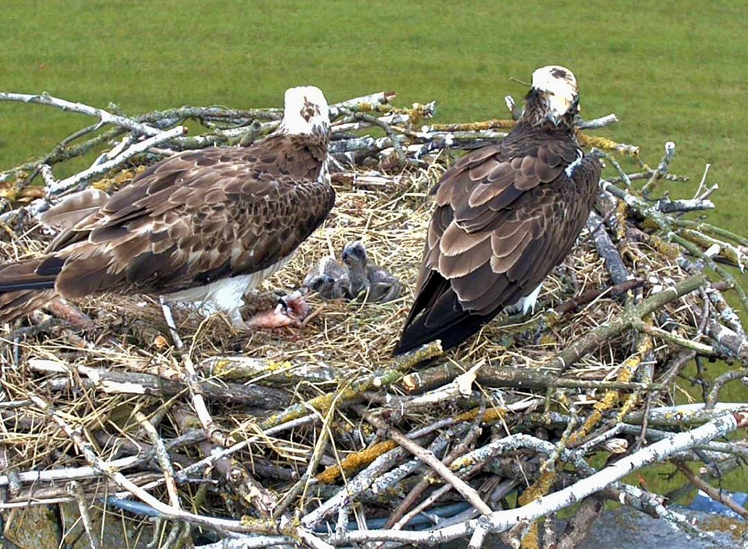 Anfang des Monats sind zwei Junge geschlüpft, die jetzt von ihren Eltern versorgt werden. Beim gestrigen Gewitter legte sich Mama Adler schützend über ihre Kleinen.