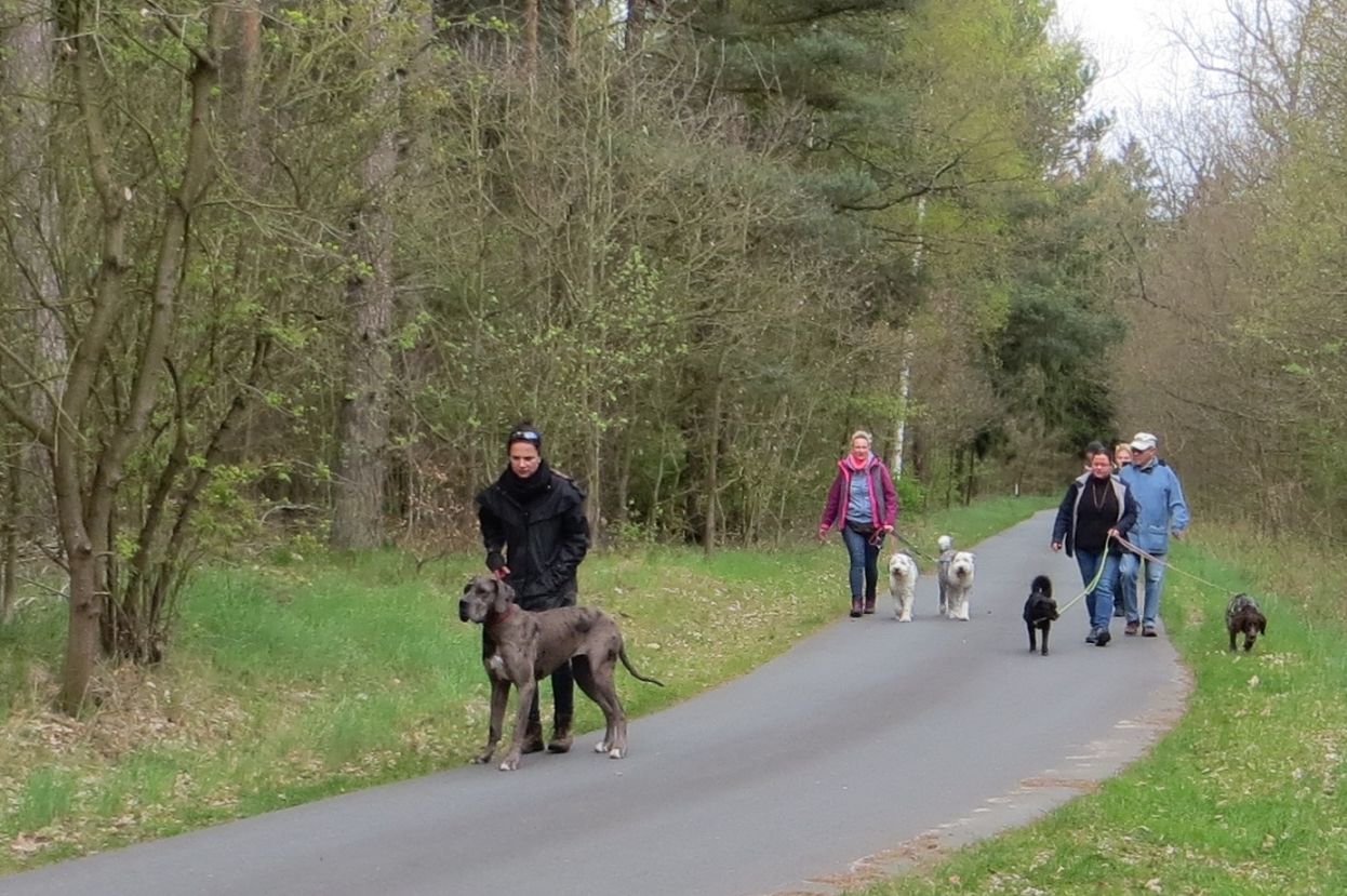 Immerhin 18 Hundefreunde mit ihren 17 Vierbeinern folgten trotz ungünstiger Wettervorhersagen am Wochenende der Einladung des Allgemeinen Hundevereins Kiebitzberg e.V. zur Wanderung von der Badestelle am Kölpinsee zum Wisentreservat Damerower Werder.